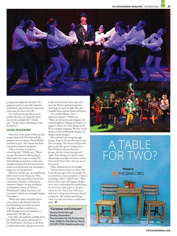 “Curiouser and Curiouser” Various times through Sunday, November 1 Peoria Center for the Performing Arts, 10580 N. 83rd Drive, Peoria 623.815.7930, theaterworks.org ENTERTAINERMAG.COM
