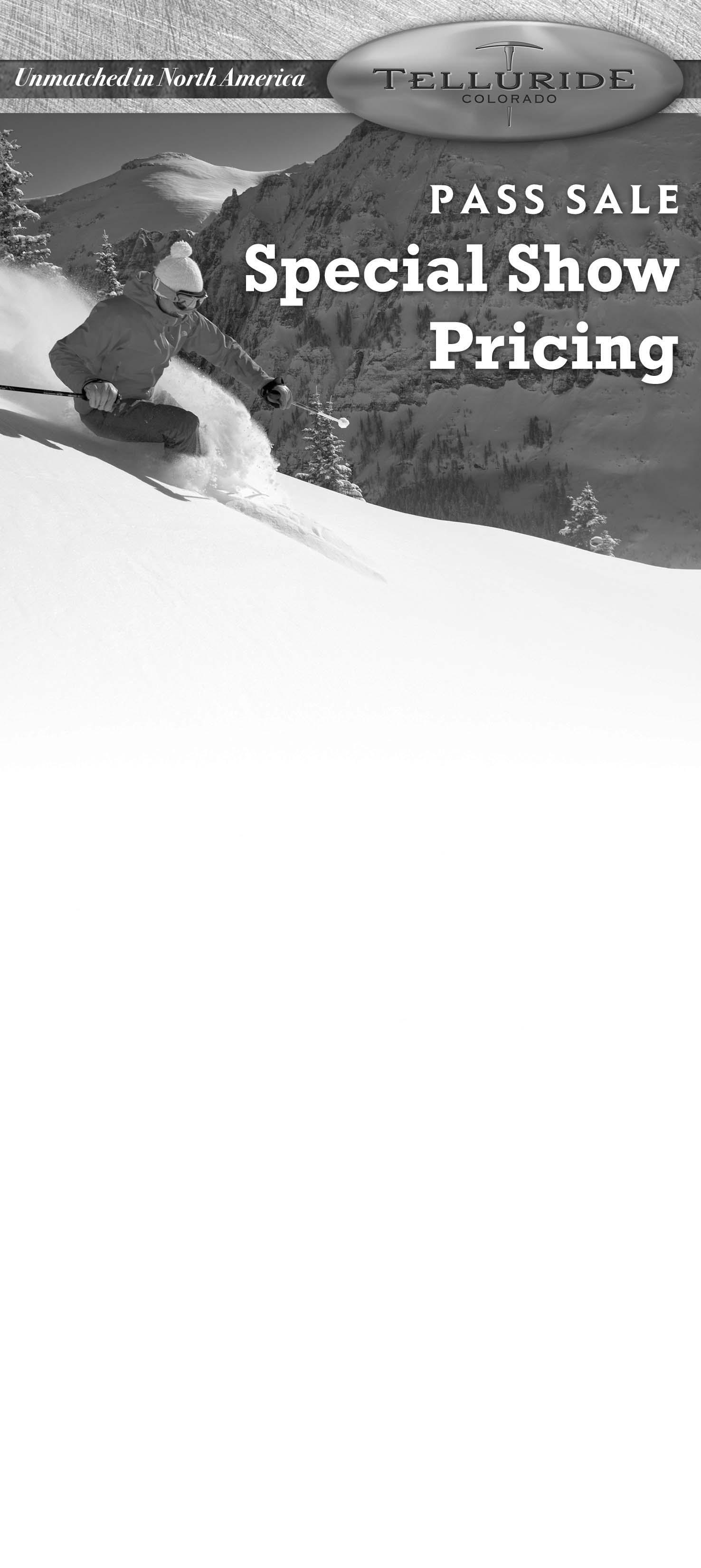 AvailableonlyatRegionalShowsandattheMountainVillagePassOffice.Pricesthesamefor liftaccesspasses,doesnotincludelimitlesslessonpass.Blackoutdatesare:Dec18-Jan1; Feb18-Feb22;March11-Close(subjecttochange)