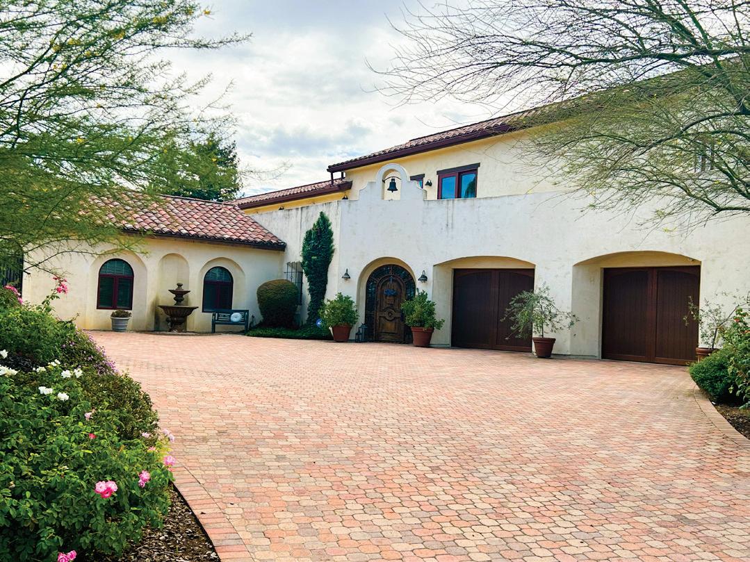 Technically, the home is a three bedroom, two and half bath home, but that doesn’t take into account the two offices on the ground level, or the guest hacienda that is also on the property.