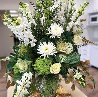 Smith goes above and beyond for all of her clients to ensure that her arrangements capture your specific requests and personality. Smith incorporates unique items to help make your order special. Whether it includes wooden crosses, incorporating flags, or personal items, she can do it all!