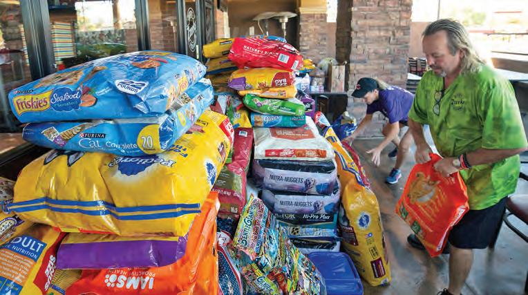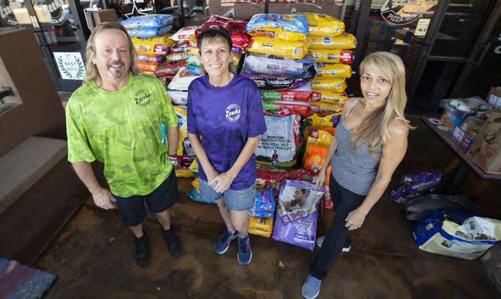 Mark and Jody Pectol unload bags upon bags of pet food at their Zzeeks Pizza & Wings pizzeria after rising to the call of several pet food banks that said they were out of chow. The Pectols collected food at all four of their pizzerias, including the two in Chandler. To find out how you can help, see the story on page 25.