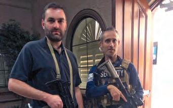 The rabbi said the 150 families attending his synagogue have, so far, not minded the presence of armed guards.