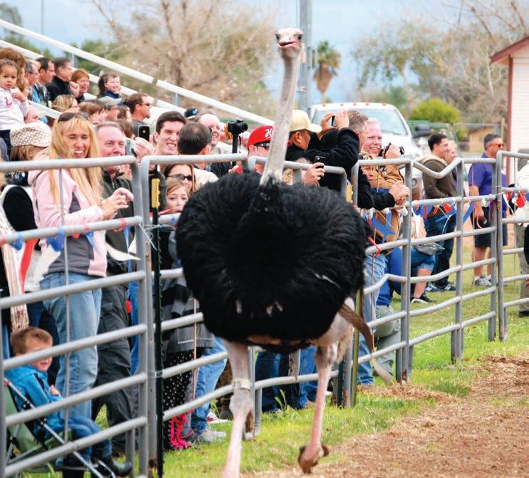 Tickets to the event are $10 for adults and $7 for seniors age 60 and older, as well as youth ages 5 to 12. It is free for children ages 4 and younger. Visit www. ostrichfestival.com/tickets for information about pricing packages for carnival ride passes and wristbands. Parking is separate: $5 per car and $3 for a motorcycle.