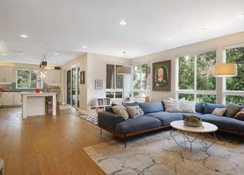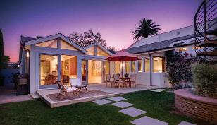 “This elegant two-story home balances simplicity, luxury and a modern lifestyle,” says agent Jennifer Hughes. “The lot is situated on one of the best blocks in Venice. Exquisite details begin with the inviting front porch that spans the width of the house. French doors open to the private backyard sanctuary with exterior living room, al fresco dining area, spacious backyard and beautiful gardens. Other appointments include custom-bleached oak floors, architectural lighting, Caesarstone counters, and limestone flooring. Located two blocks off Abbot Kinney.”