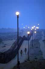 and colors suggest both reckoning and redemption. Ami Vitale’s portrait of gun-carrying camel riders guarding an undulating dirt border road feels similarly surreal, with lights smearing blue sky like glowing sentinel orbs.