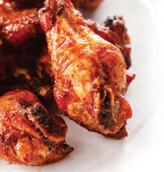 After deciding on bone-in or boneless, you can choose among five dry rub seasoning blends and no fewer than 16 sauces, ranging from mild to wild.