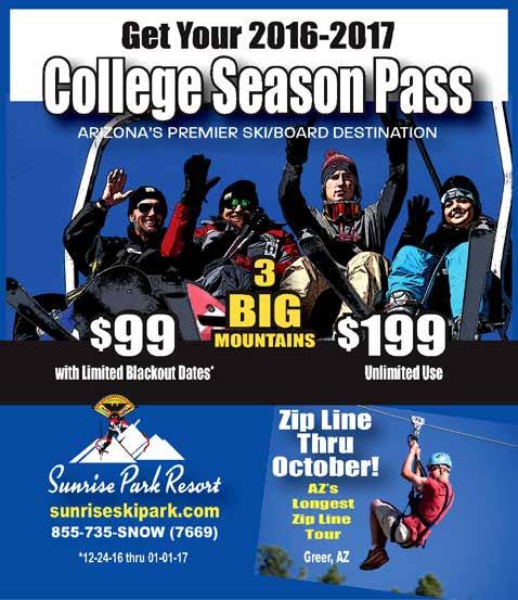 The world’s largest traveling water park hits Arizona this month. Featuring over 40 water slides and attractions, it’s the best way to cool down after a long, hot summer. Expect three 40-foot mega-slides, zip lines and bungee trampolines. Bring your bathing suit and leave your fear of heights at home when you take on The Drop Kick, a 42foot tall water slide, designed to satisfy your inner thrill seeker. Salt River Fields at Talking Stick Resort, 7555 N. Pima Road, Scottsdale, slideacrossamerica. com, times vary, Friday, September 23, to Sunday, September 25, $25.