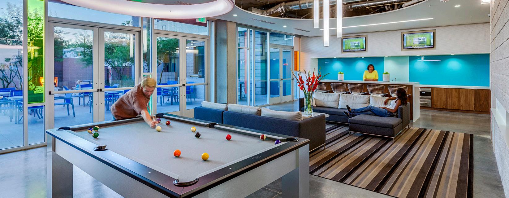 “We have direct access to the light rail, which is convenient for those without transportation,” says Renee Castanos, community manager for Green Leaf Tempe Station. “We are centrally located just far enough from campus without having all the congestion.”