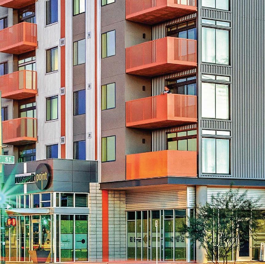 Roosevelt Point is a fun, urban community in downtown Phoenix with a variety of oor plans, numerous amenities including multiple swimming pools, two modern tness centers and so much more. Everything you need and want is all right here, all that is missing is you. Reserve your space today before they’re gone. Apply and