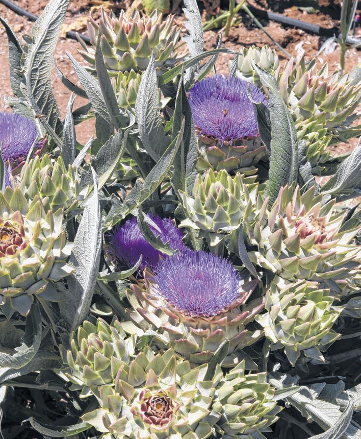 Artichokes have been left to "go to seed" or bolt in a community garden plot in Agritopia's gardens in Gilbert.