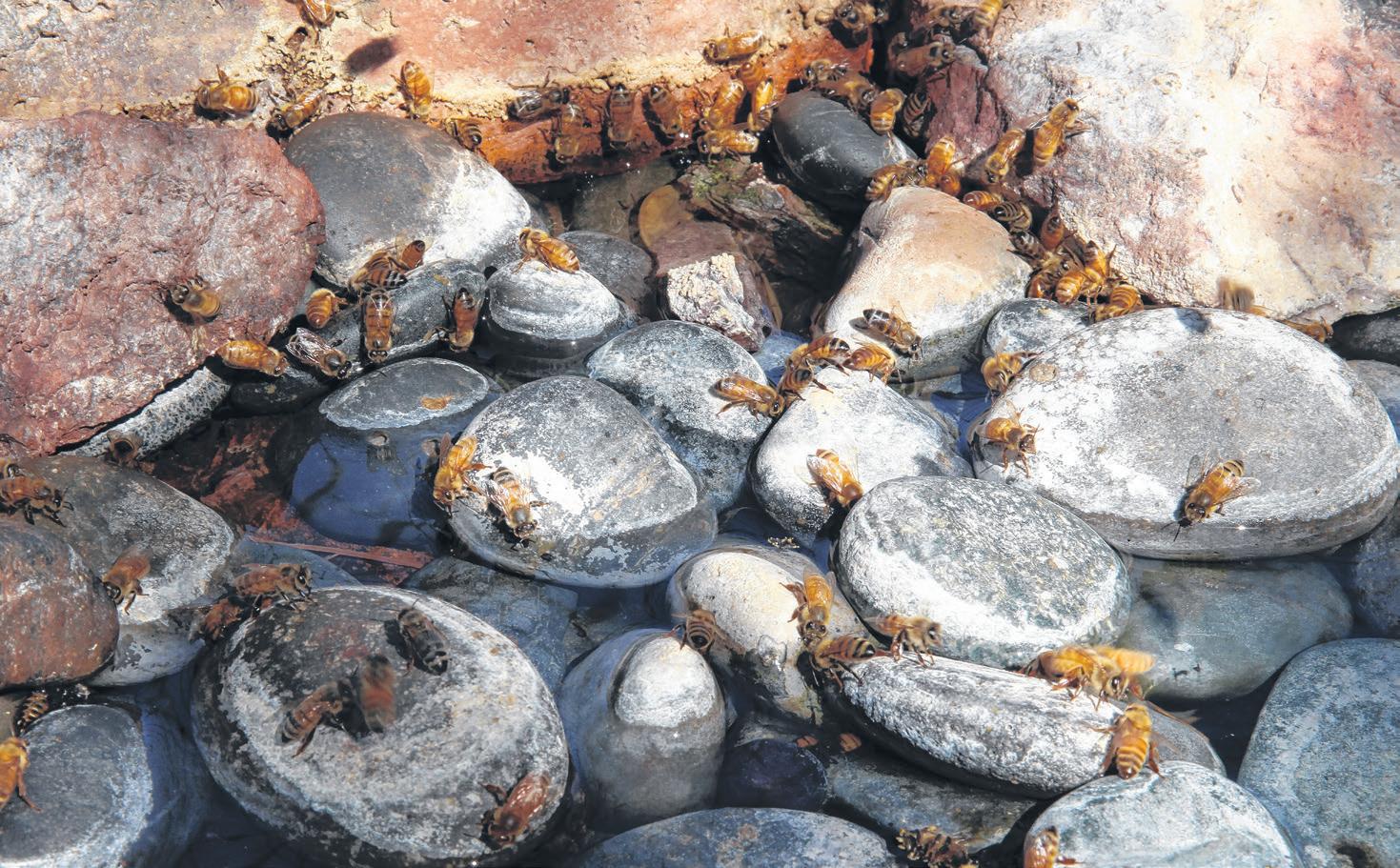 This time of year, bees seek water as much as pollen, Kaftanoglu notes. Large numbers of them can gather around ponds and might become attracted to your lawn sprinklers. Bees that are busy gathering water and pollen far from the hive, however, usually aren’t a threat.