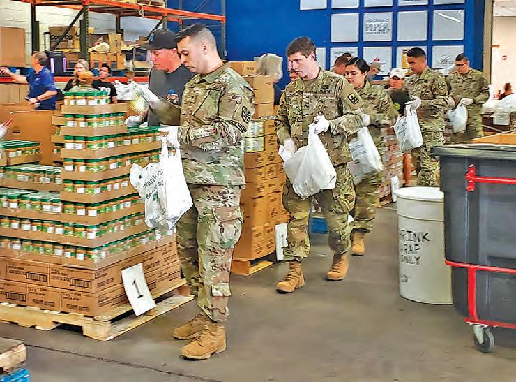 On Thursday, about 20 members of the Guard from several units across the state were at United’s distribution center filling plastic bags with various foodstuffs and placing them in large cardboard delivery bins.