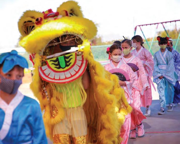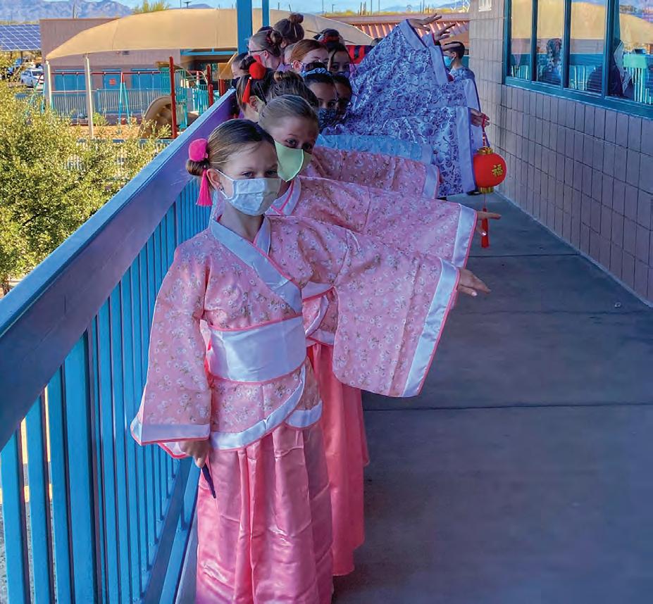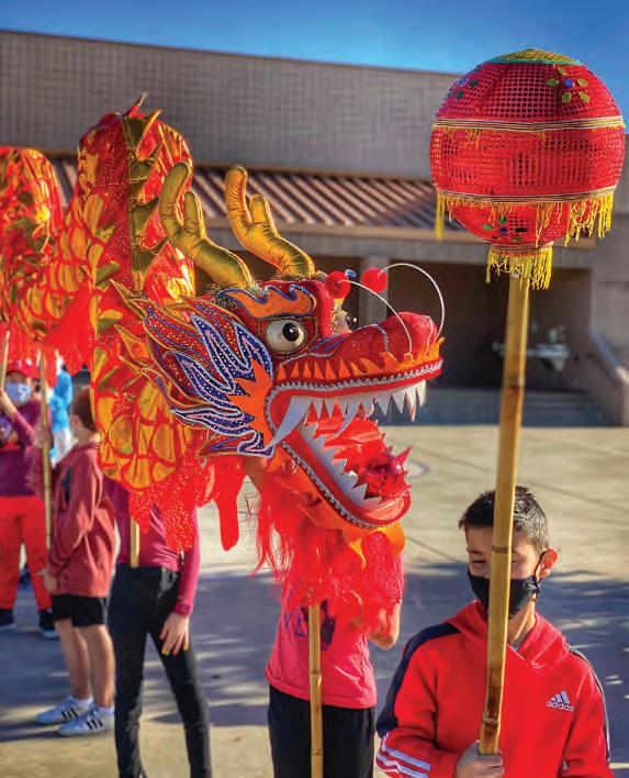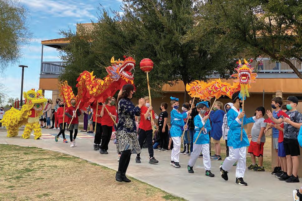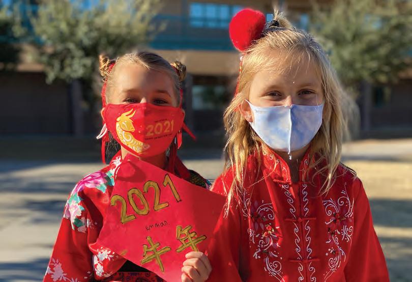Students at four Cave Creek Uni�ied School District schools celebrated Chinese New Year on Feb. 12, when the lunar calendar started, with a day of Mandarin Chinese programs. According to the Chinese zodiac, 2021 is the Year of the Ox. Despite the challenges presented by COVID-19, more than 1,200 prekindergarten to 12th-grade students took part in poster competitions, schoolwide parades with Chinese dragons and lions, calligraphy art lessons, ping-pong games and traditional fashions.