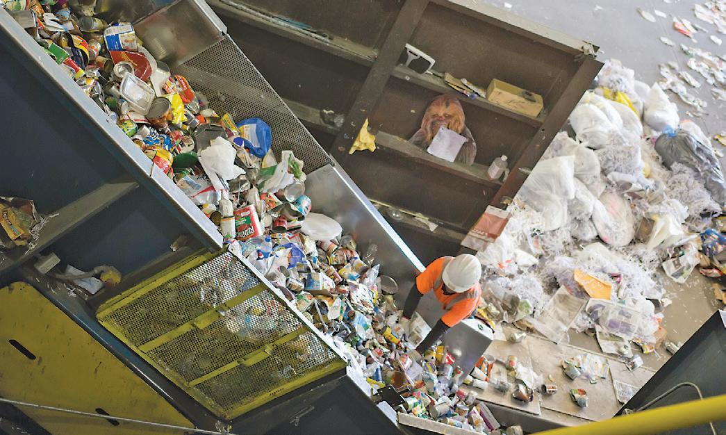Walking into a recycling processing plant, visitors are greeted with the rattle and hum of machinery and recycled materials, everything from aluminum cans to glass to metal to newspapers. Since they’re intermixed into residents’ blue barrels, they arrive at the facility the same way.