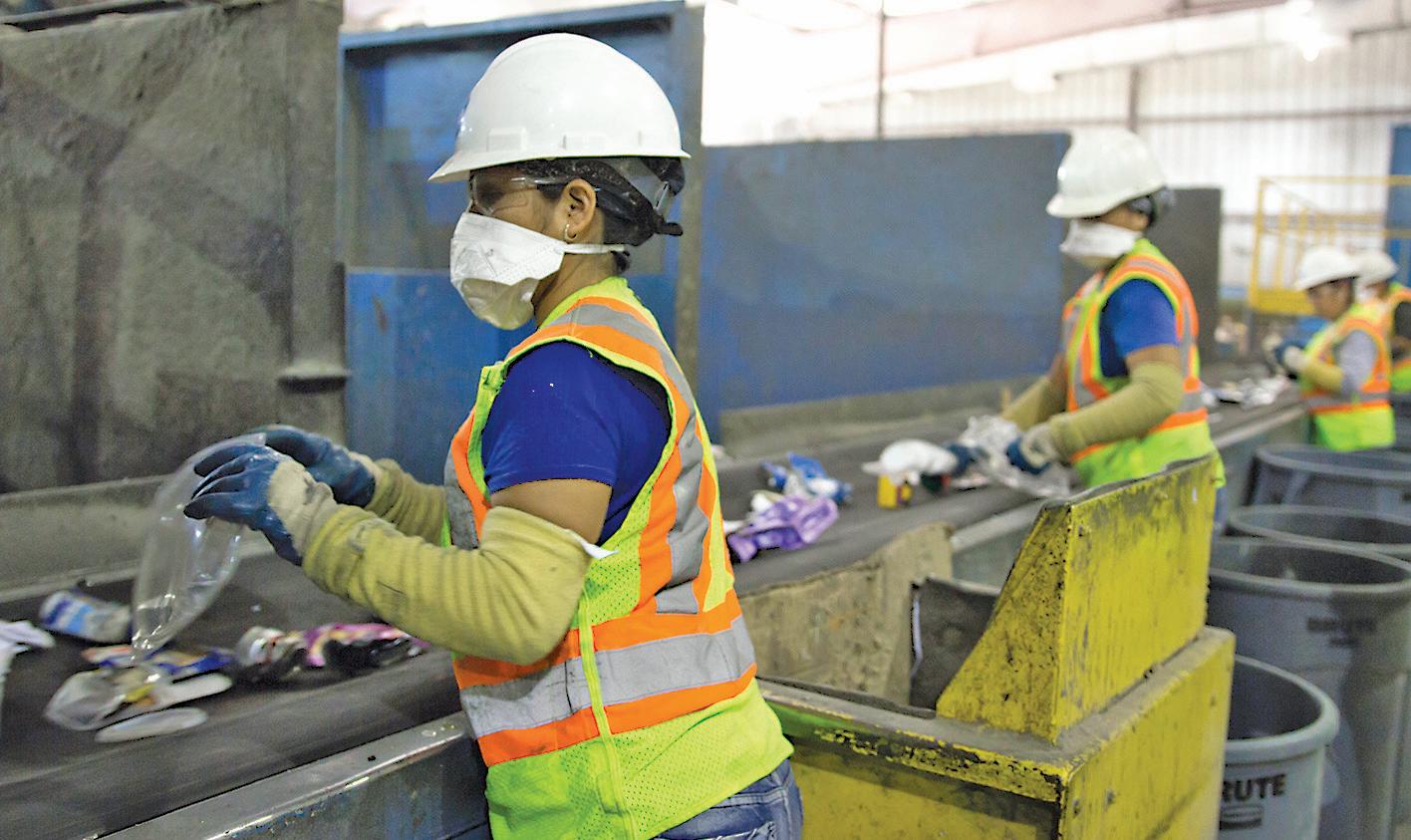A worker sorts through recyclables at the Materials Recovery Facility at the Salt River Landfill. Jerry Hartley, plant manager for the facility, said “it’s sort of like panning for gold.”