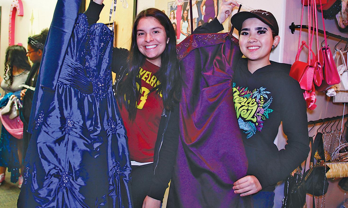 KimDani Bermudez and Paulina Nakagome, seniors at Arizona College Prep, pick out free prom dresses at the Cinderella Affair. The two are among many students around the East Valley coming to grips with the growing cost of high school proms. Story, Page 13.