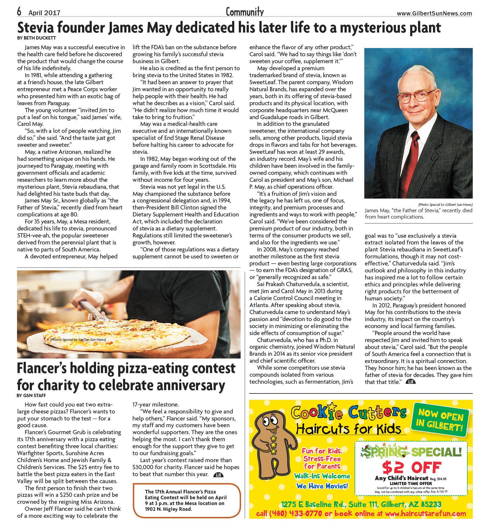 Kevin Vanliew of East Gilbert was named a finalist for Texas Roadhouse Managing Partner of the Year award, which is the company’s highest honor. He and 20 other outstanding managing partners were chosen from a pool of nearly 500.