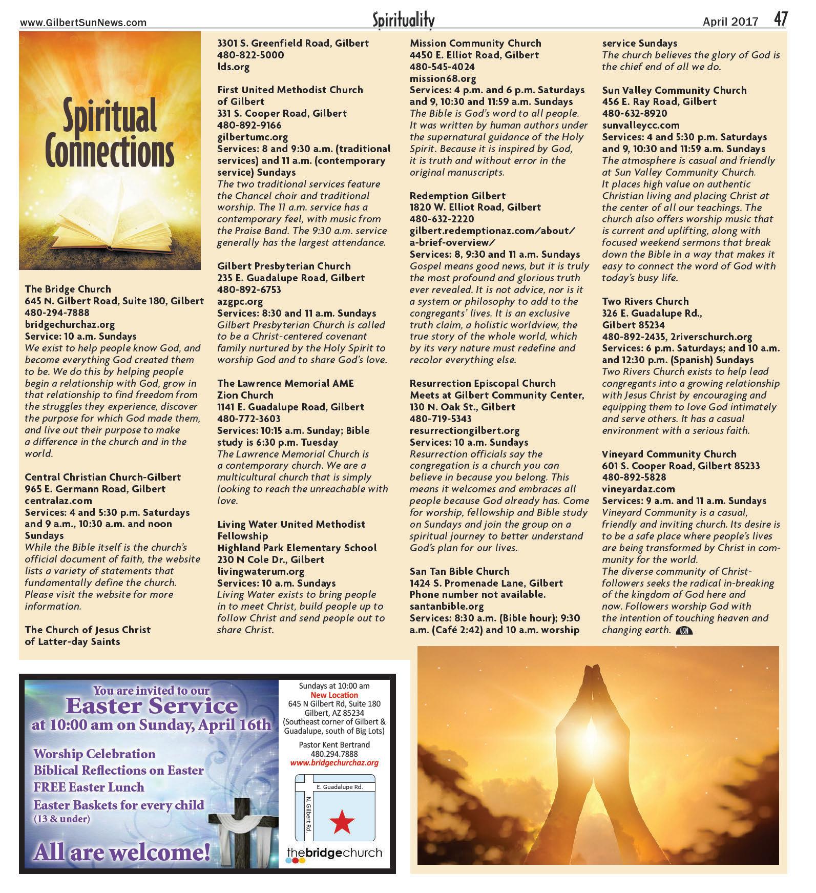 The Desert Rivers Audubon Society, the local chapter of the National Audubon Society, meets the second Tuesday of the month between October and March. The meetings are held 7 p.m. at the Southeast Regional Library, 775 N. Greenfield Road, Gilbert.