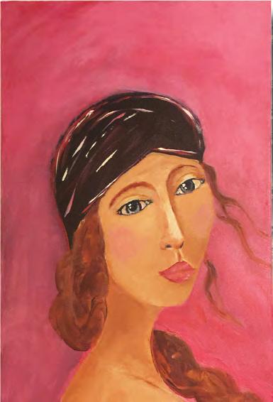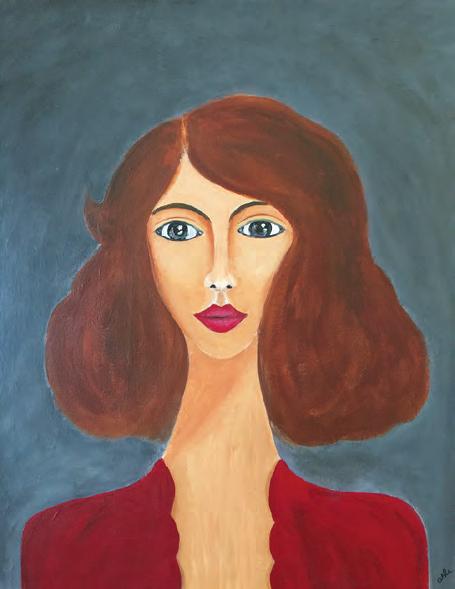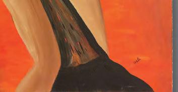 “The painting has a mystery to it. Karen painted it using only two of the three primary colors and black and white, and yet people are puzzled by which primary color was not used,” said Belcher, a friend since 1992.