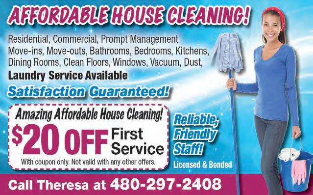 35years Experience 20years in the Valley Free Estimates Local References Move-out cleaning services available. All work done by non-smoking, meticulous owner. Call Shirley 480-433-4945