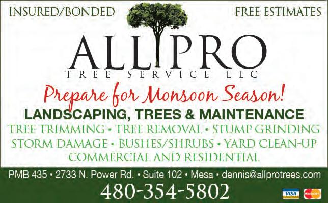 Visa & MasterCard Accepted Mention this Ad and Receive 15% off Discount! 480-354-5802 or dennis@allprotrees com
