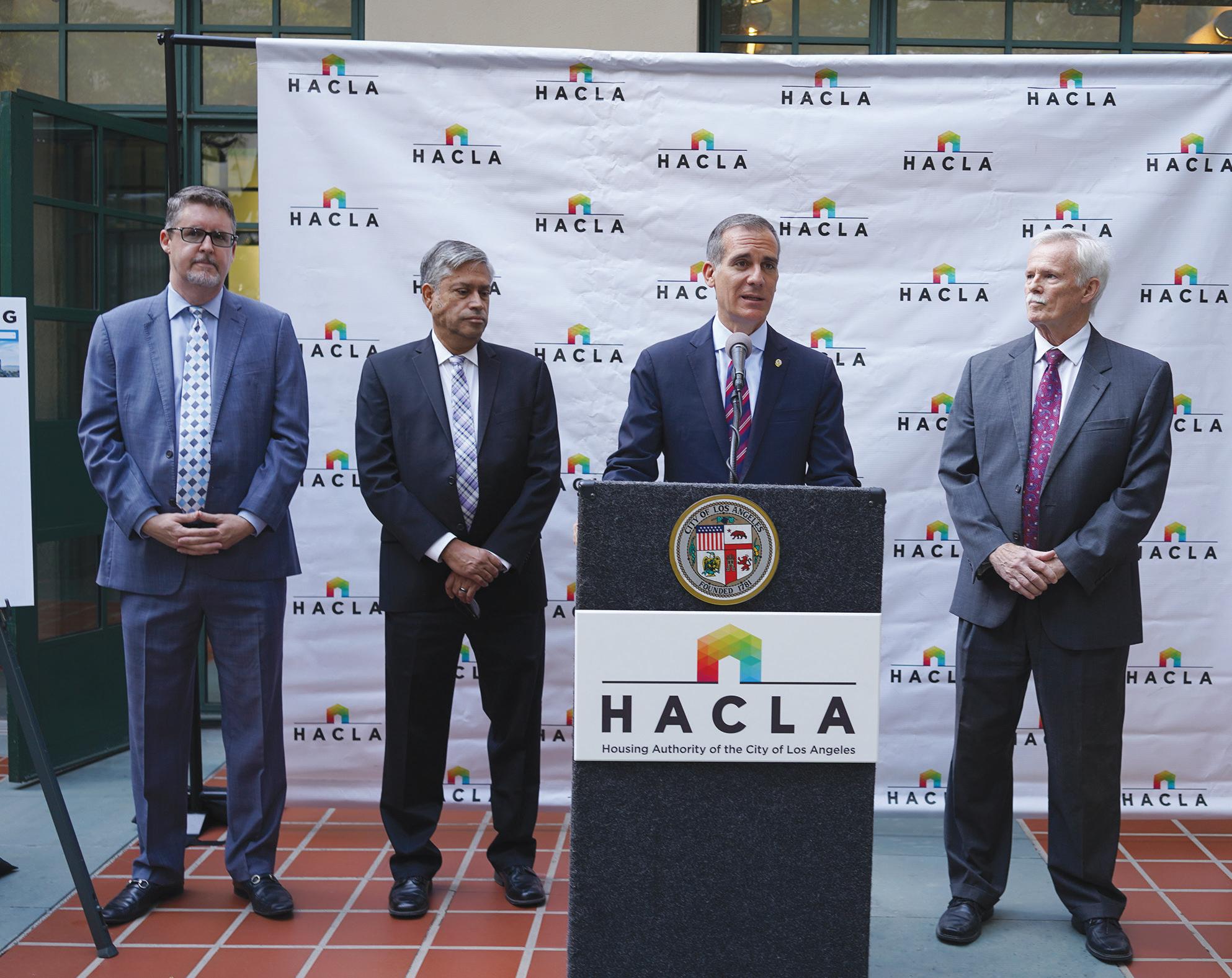 “I think the pandemic showed just what we can do when we come togeth er in a moment of crisis to help people in need,” Garcetti said. “A lot of people said, ‘Why does it take so long to build hous ing?’ And they’re right. Can we buy old motels and existing apartment build ings? And this housing authority in our housing department has been able to ac quire 35 sites with 2,383 units, but it’s not enough. So let me first talk to our proper ty owners and make a plea.