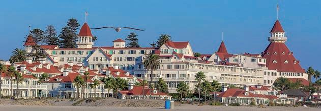 Coronado and the Pacific Ocean. Standard rooms include a king size “sleep therapy” pillow top bed, microwave/fridge, Wi-Fi, cable TV and air conditioning. Full kitchen suites are also available. Guests can walk to shops, restaurants, golf, tennis and theatre. Daily, weekly or monthly rates offered. (619) 435-4137 or www.villacapribythesea.com