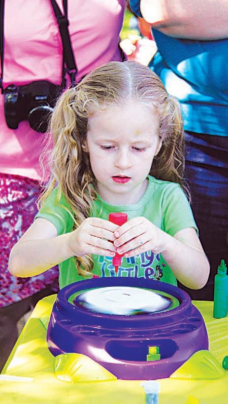 1. Andrea and Reily McCorkle enjoyed a yummy snow cone in the shade between events. 2. Mikhaela Flindalo hung out on the grass in her cute summer dress. 3. Molly Prince watched a volunteer demonstrate how to do an project. 4. Emma Miarka paused from her art project to grin for the camera. 5. Colleen and Madison Lillo took a snow cone break in between activities. 6. Gabrielle Olivieri tested out many costumes including this chef’s hat and apron. 7. Susan and Jacob Forkos enjoyed the sunshine while watching the entertainment on stage. 8. Hannah Freiholtz got creative with the paint spinning machine. 9. The band got into the spirit of the event and played some great music for the crowd. 10. The Scottsdale International Club performed on the stage that was built on top of the lake. 10 1 2 3 4 5 6 7 8 9