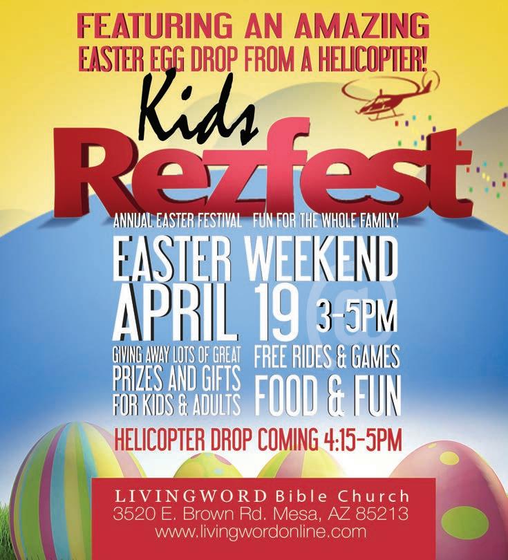ducks and chicks. Each child will be given an Easter basket with toy-filled eggs, bubbles and candy as well as an Easter balloon. The Easter Sunday Brunch, at Scottsdale Resort and Conference Center, 7700 E. McCormick Pkwy., costs $62 for adults, $31 for children 8-12 and is free for children 7 and younger. For reservations between 10 a.m. and 2:30 p.m., call (480) 596-7700.