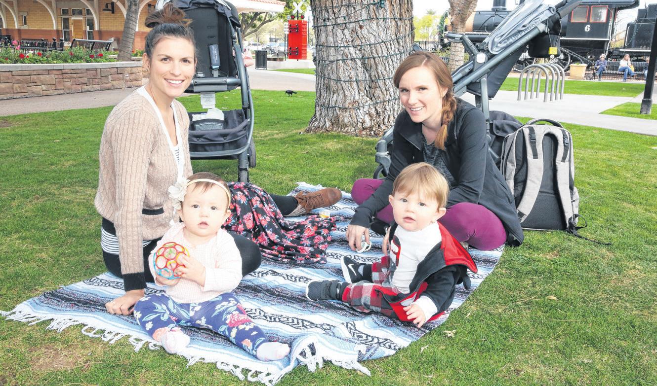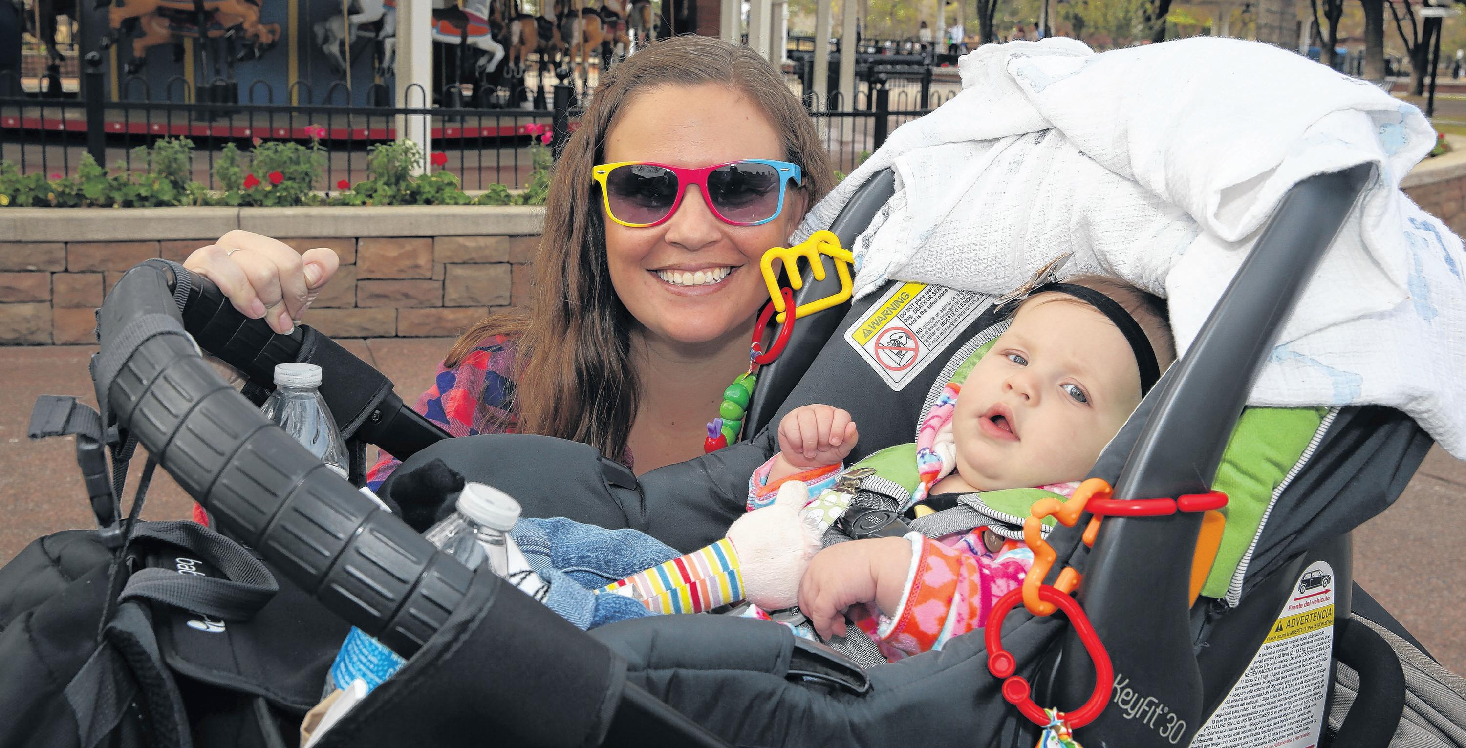 Molly Rafferty and Teagan, 6 months, take a break at McCormick-Stillman Railroad Park in Scottsdale.