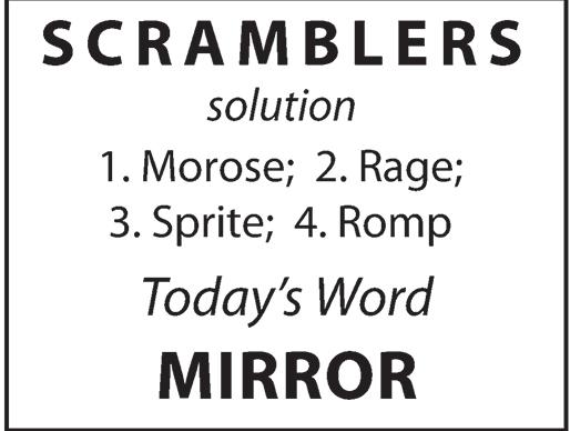 OR, you may now submit by email by typing in your four words and Today’s Word with “Scramblers puzzle” in the message line. Send it to: editor@NearbyNews.com.