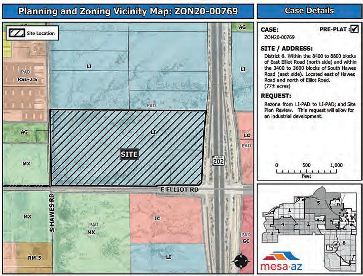 The Eastmark developer promises the changes will “further solidify the Elliot Road Tech Corridor as a signi�icant employment area.”
