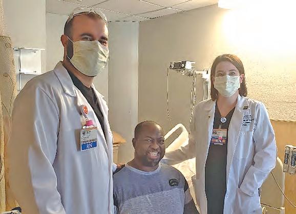 Damian is flanked by Dignity Health registered nurses/transplant coordinators Gabriel Quiroz and Kelli Vaughn. (Special to the Tribune)