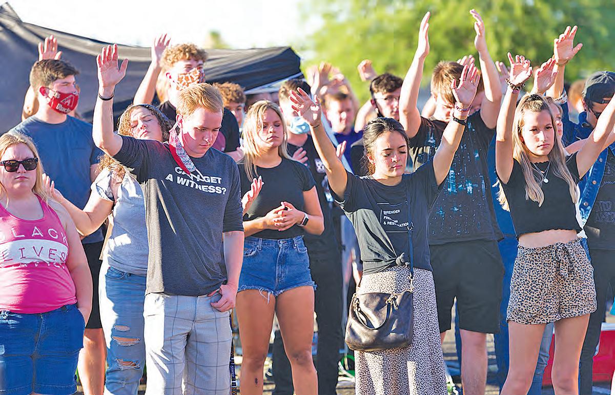 Giles and Duff knelt on the asphalt in the church parking lot in prayer, joined by at least 200 others, including some Scottsdale Police of�icers.