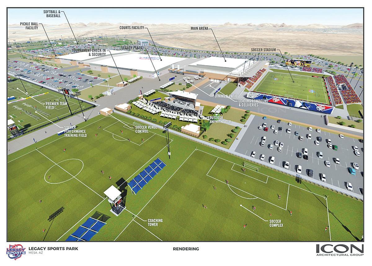The proposed Legacy Sports Park in southeast Mesa would have plenty of room for plenty of sports, say developers Randy and Chad Miller, who already are making moves to make it a reality. (Courtesy of Chad Miller)