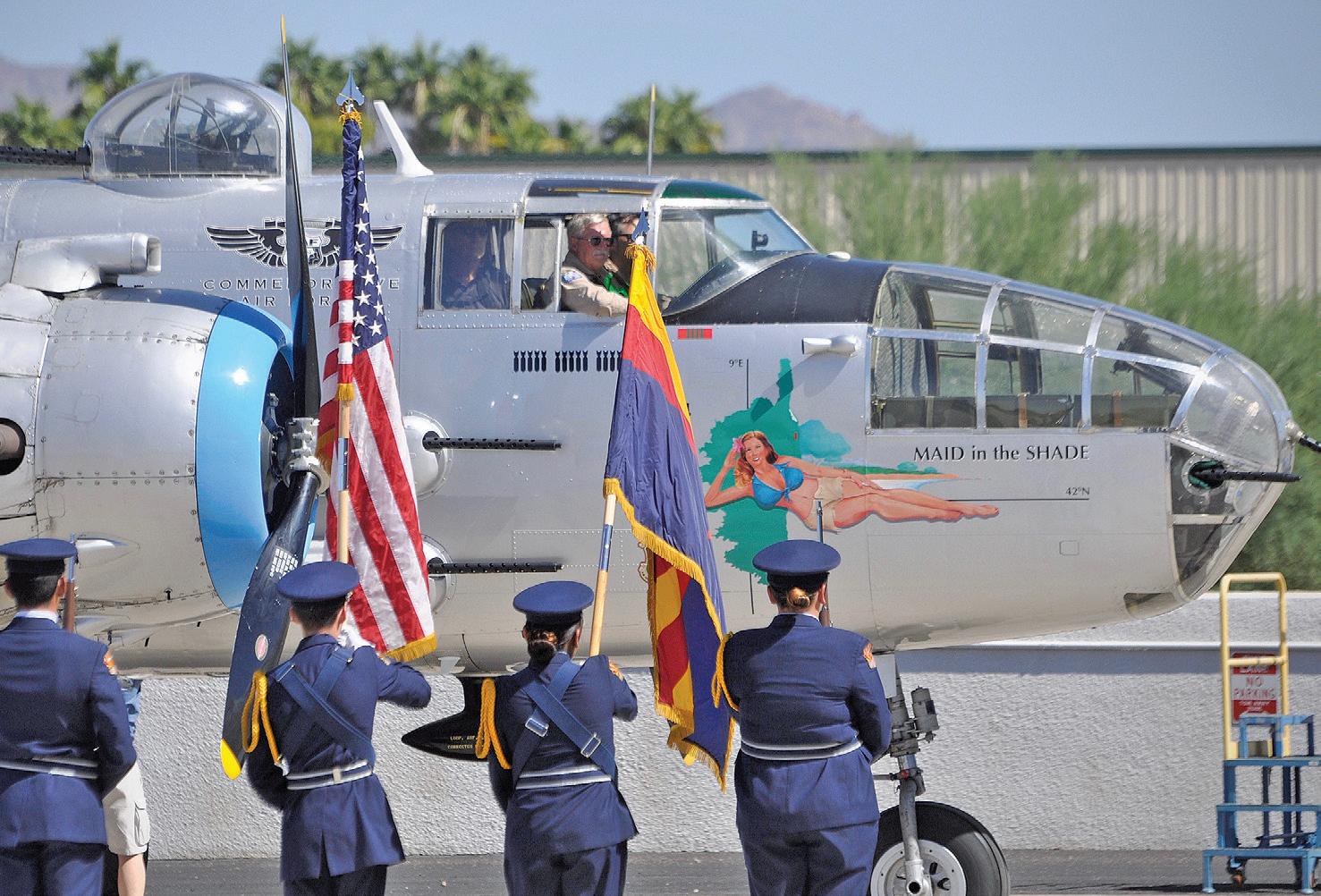 Visitors surround a B-25 after its fl ight at the Air Force Museum at Falcon Field, Mesa. A B-25 and B-17 from the Commemorative Air Force completed their U.S and Canada Flying Legends of Victory Tour with a Homecoming event in Mesa. More photos, Page 16.