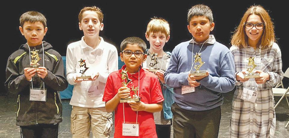 To win the district bee, Omkar bested 23 bee winners from other SUSD elementary, middle and K-8 schools. e winning word was “magnesium.”