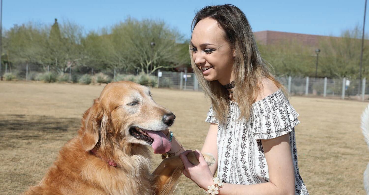 Reilly Nelson from McCormick Ranch enjoys an outing with golden retriever Twinks.