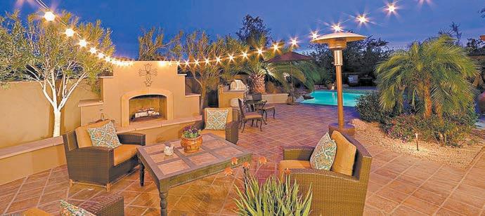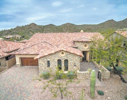 Extraordinary warmth, character & charm! Inviting paved walk to the custom front door. Spectacular 2-way gas fireplace in the entry hall/formal dining, hand scraped wood flooring in the den. Rare Manganese saltillo tile in all the main living areas. Enjoy your view at the kitchen island though windows that frame the McDowell Mountains! Kitchen also offers 5 burner gas cook top, cabinetry with crown molding detail, slab granite, walk-in pantry. Entertainers backyard: pebble finish pool w/water feature, expansive patios w/lighting, wood burning fireplace (convertible to gas), built-in BBQ, putting green, rose/herb garden, outdoor shower, soothing fountain all on a .37 acre lot. Jack & Jill set up on master side, bedroom 4 & bath #3 split. Quality finishes & beautifully maintained.