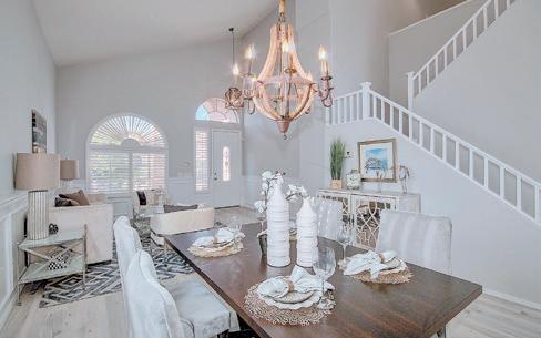 fireplace, bar fridge & wine cubbies. Huge master suite with fireplace, walk-in shower & dramatic freestanding tub. Anderson windows & doors throughout, updated bathrooms, polished travertine & wood flooring, volume ceilings & plantation shutters. Expanded rear patio area with extensive use of pavers, fire pit & built-in BBQ. New in 2016-tile roof underlayment, foam roof recoat, pebble finish pool & pool equipment. Extra deep 3 car side entry garage with cabinets, newer doors & operators.