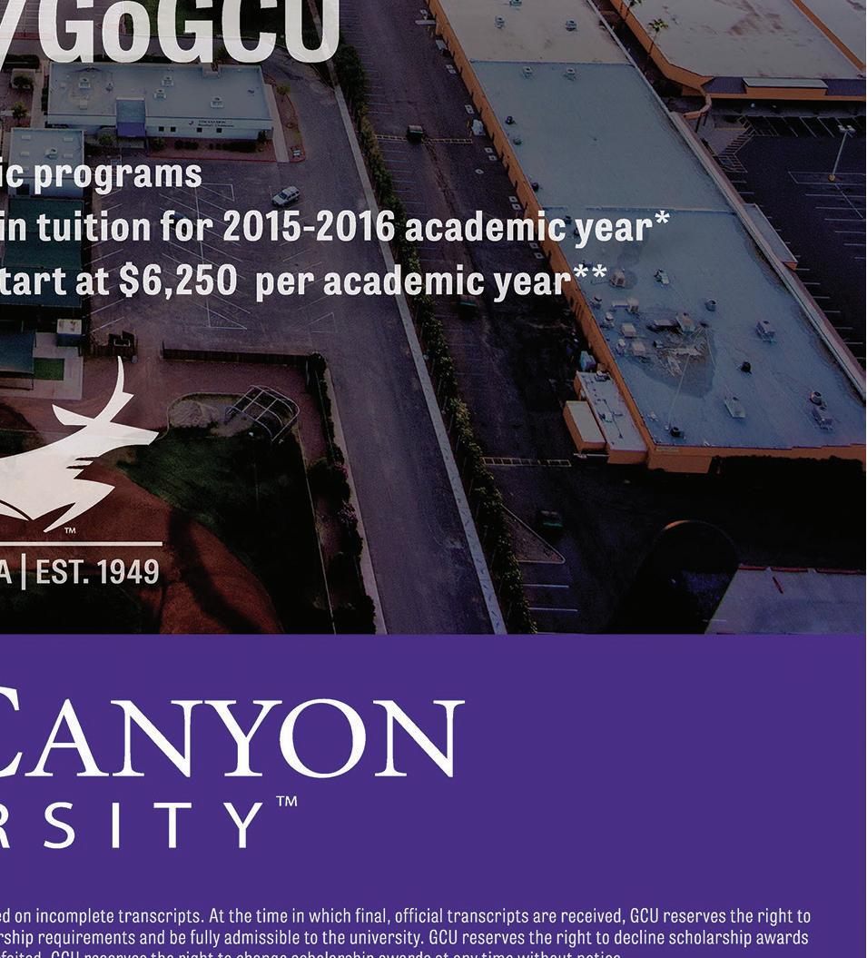 “But we also want everyone to remember what came out of the attacks: the spirit of unity, peace and hope. We persevere.” e Scottsdale Center for the Performing Arts is open from 10 a.m. to 5 p.m. Monday through Saturday and Sunday from noon to 7 p.m. for the ceremony. e center is located at 7380 E. Second St., Scottsdale.