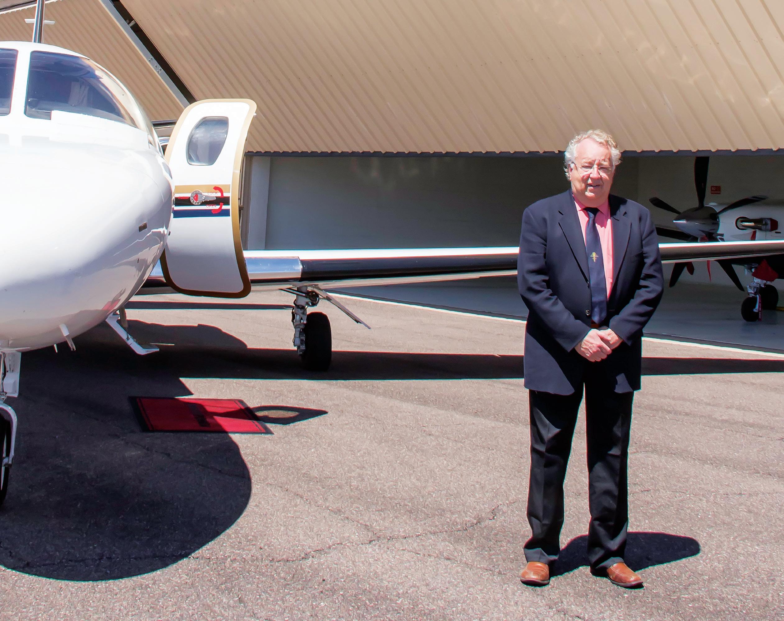 John Meyer’s lifelong love of aviation isn’t just written on his face, in the form of a big grin as he climbs aboard a Cessna Citation II jet that’s just emerged from one of the hangars at Scottsdale Airport – it’s also written on his tie, in the form of a small, needlepoint runway design etched into the fabric. He points this out with pride. From the model jet perched atop a filing cabinet to the paintings of planes that adorn the walls, everything about John Meyer’s office speaks to his passion for and knowledge of all things aviation.