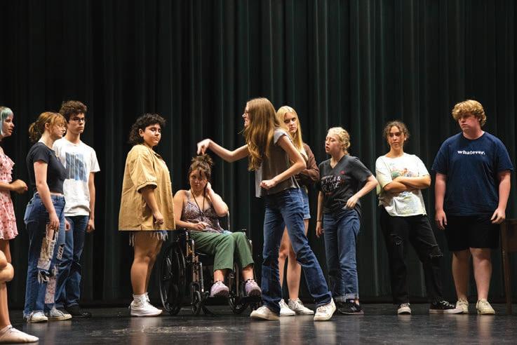 also pretty large, which is a wonderful problem to have. The cast auditioned for the show at the beginning of the school year and began rehearsing three times a week in August. One of the biggest challenges with the show is the 2-week break the school district has in the beginning of October. The students have nine days after they return to school before the show opens.”