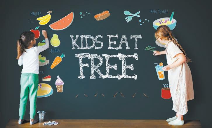 Kids 12 and younger eat free when adult meals are purchased on Wednesdays.