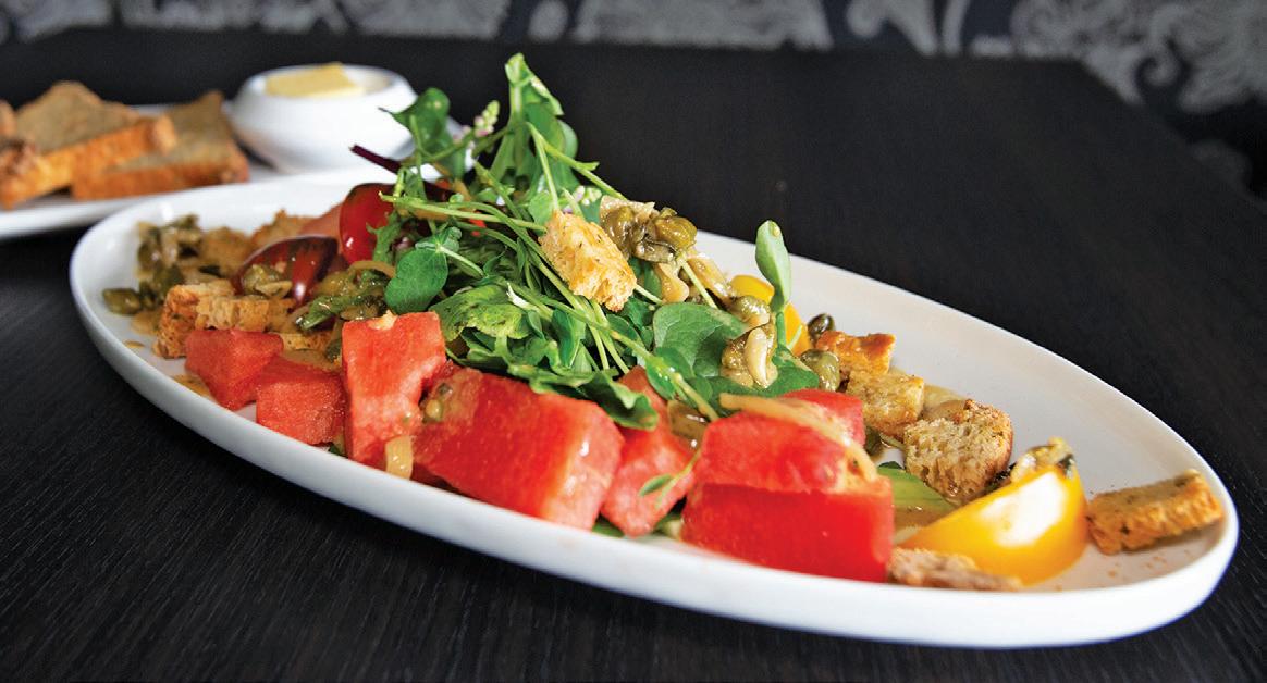 The Sapiens Watermelon Salad is a light, refreshing, paleo-friendly salad featuring freshly picked ingredients, including tomatoes, arugula, watermelon, frisee and more. (Kimberly Carrillo/Progress Staff Photographer)