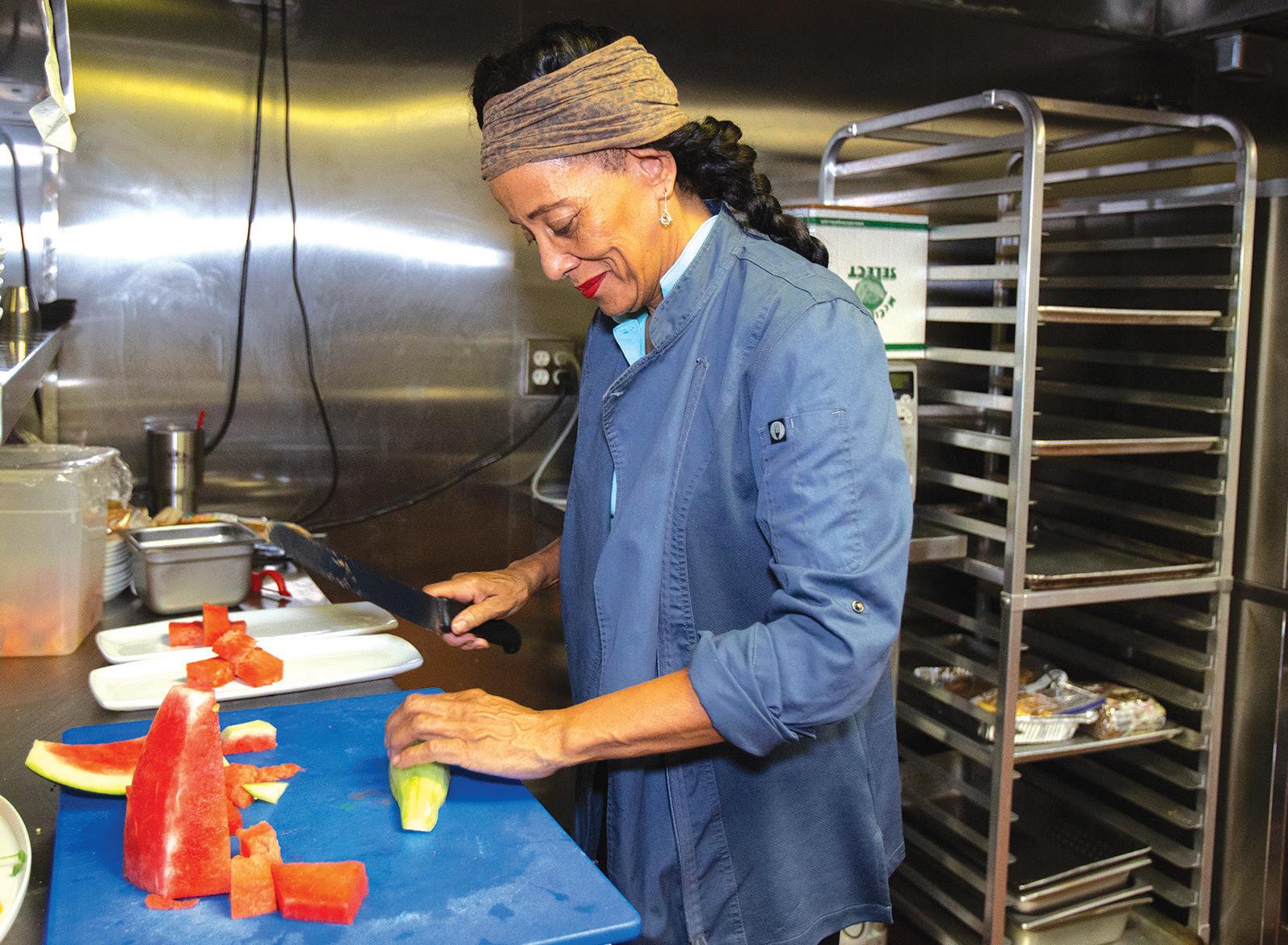 Chef Aurore de Beauduy-Yasinsky prepares the Sapiens Watermelon Salad,