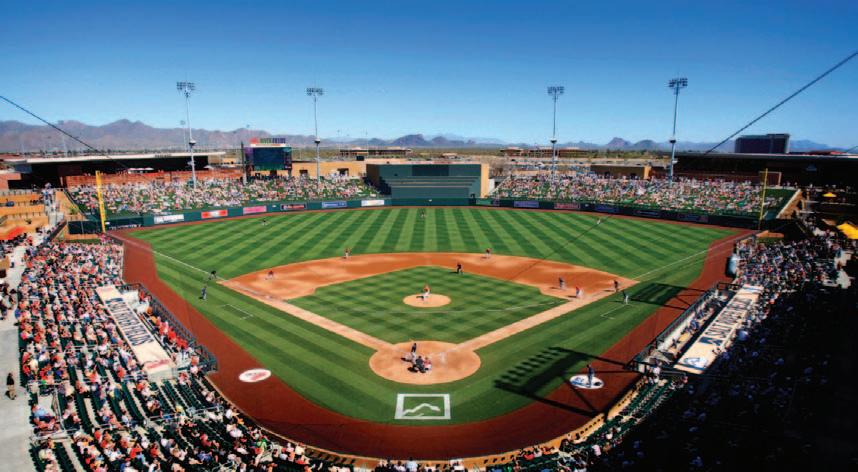 The 10,000 seat Goodyear Ballpark, first opened in 2009, plays host to both the Cincinnati Reds and Cleveland Indians. It’s one of the more familyfriendly parks in the Cactus League, featuring inflatable attractions and a kid-sized Wiffle ball field on the first base concourse.