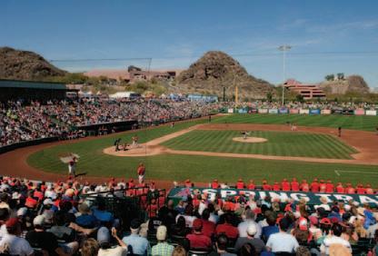 The 10,000 seat Goodyear Ballpark, first opened in 2009, plays host to both the Cincinnati Reds and Cleveland Indians. It’s one of the more familyfriendly parks in the Cactus League, featuring inflatable attractions and a kidsized Wiffle ball field on the first base concourse.