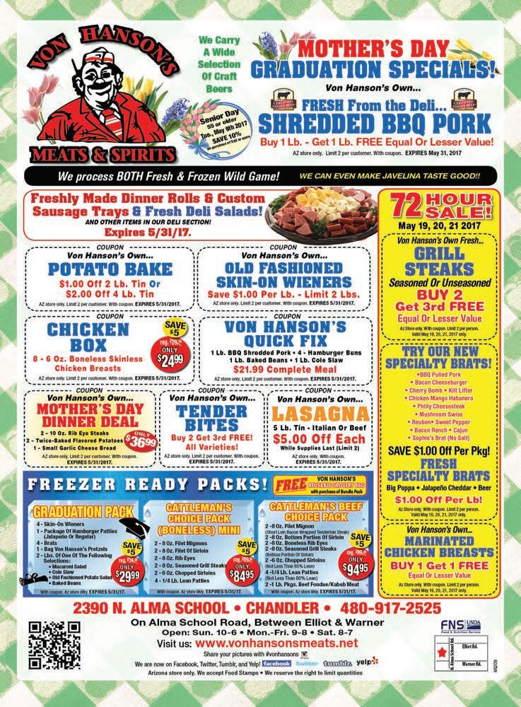 cials May 12-14. The restaurant at 2950 E. Germann Road is providing a fajita dinner for $10.99 all weekend, along with house margaritas for $4 and sangrias for $5. The specials are available all day, all three days.