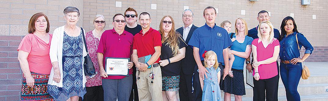 City officials honored three men who rescued a disabled veteran from his burning home near Brown and Higley roads in mid-April.